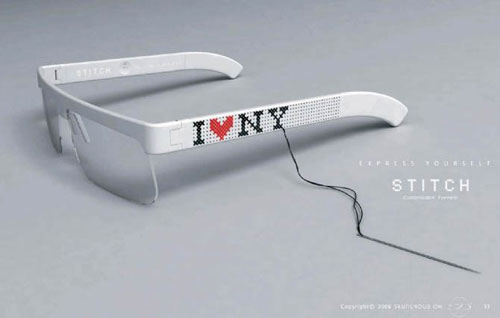 На этих очках, с помощью иголки, нитки, сноровки и маленьких дырочек на дужках можно вышить всё, что угодно, от знаменитого знака Милтона Глэйзера, до таинственных жёлтых квадратиков. Прелесть в том, что Очки с такой вышивкой будут уникальны. www.coroflot.com KAK.RU |