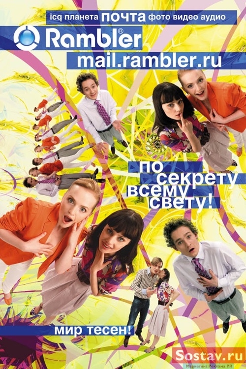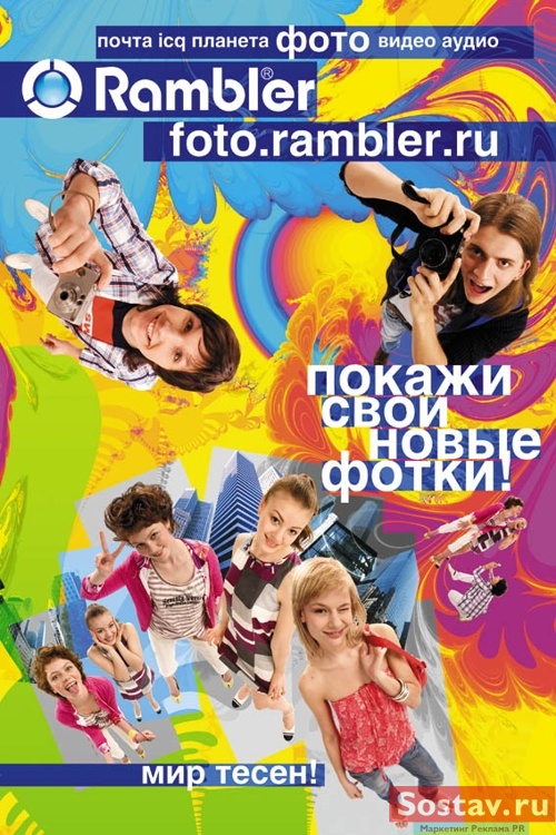 Рамблер проводит летнюю рекламную кампанию своих коммуникационных сервисовИнтернет-портал "Рамблер" с середины июня запускает рекламную кампания своих коммуникационных сервисов. Кампания, объединенная общим слоганом "Мир тесен", представляет пять сервисов для общения в Интернете - "Рамблер-Планета", Rambler Vision, "Рамблер?Фото", "Рамблер-Аудио" и "Рамблер-Почта". Рекламная кампания проходит в Москве, Санкт-Петербурге, Екатеринбурге, Новосибирске, Нижнем Новгороде, Казани и Краснодаре. В кампании задействованы конструкции наружной рекламы, метро, печатные издания и Интернет. "Виртуальный мир общения наиболее востребован среди молодых активных людей, на них и рассчитана наша рекламная кампания, - говорит Жанна Белецкая, вице-президент по маркетингу Rambler Media. - Рамблер объединил на своей платформе сервисы для мультимедийной коммуникации. И теперь пришло время рассказать об этом и показать новый стиль общения портала". "Рамблер меняется вместе с миром и вместе со своей аудиторией, - рассказывает Леонид Баранов, креативный директор Rambler Media, - Рядом с каждым из нас есть интересный писатель, прекрасный музыкант, талантливый режиссер... Общаясь с ними, мы открываем захватывающие истории. Мир виртуального общения - бесконечно глубокое пространство, и чем внимательнее мы присматриваемся к событиям этого мира, тем больше деталей замечаем. Именно поэтому Рамблер предлагает серию проектов для молодых и активных людей - для тех, кого переполняет буря эмоций, для тех, кому очень важно рассказать миру что-то действительно важное. И не только не рассказать, но и показать - в цвете, кадрах, звуках...". Группа компаний Rambler Media - одно из крупнейших объединений русскоязычных интернет ресурсов. В группу входят интернет-портал и поисковая система Rambler.ru, информационный сайт Lenta.ru, интернет-провайдер Rambler Телеком, рекламное агентство Index20, группа компаний мобильных технологий и контента Rambler Mobile и другие. В сфере интересов Rambler Media поисковые технологии, медийные и коммуникационные проекты, электронная коммерция и развлекательные сервисы.