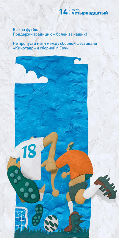 Труд освобождаетИстория такова: Виктору Меламеду заказали для буклета картинки, а Шандизайну — вёрстку. Иллюстрации Меламеда, прекрасные и сами по себе, в какой-то момент было решено вылепить в пластилине. Как говорит он сам, у него очень вежливо попросили разрешения это сделать, и он, естественно, не возражал. В результате всё волшебным образом ожило и итог получился настолько замечательным, что больше здесь не может быть никаких слов. Это нужно просто разглядывать, и помнить о том, что неленивым и любопытным — царствие божие и прочие бонусы, а труд, как известно, освобождает душу от метафизического ожирения.![]() ![]() ![]() ![]() ![]() ![]() ![]() ![]() ![]() ![]() ![]() ![]() Дизайн: Израилов Артём, Антонов Егор, Башев Денис Менеджер: Кршижановская Ирина Артдиректор: Шанович Сергей Иллюстрации: Виктор Меламед Viamelamed , где, кстати, можно посмотреть исходные иллюстрации и скачать буклет целиком. www.shandesign.ru KAK.RU |
