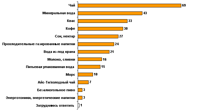 Каждый пятый россиянин пьет воду из-под кранаВ июне текущего года в рамках общероссийского омнибуса Ромир выяснил, каким прохладительным напиткам отдают предпочтения россияне. Согласно результатам исследования, более чем две трети респондентов утоляют жажду чаем, 43% минеральной водой, треть респондентов квасом. Примерно столько же россиян (30%) не отказывают себе в чашечке кофе. Оказалось, что кофеманы, в основном, живут в больших городах (38%) и хорошо зарабатывают (44%). Каждый пятый россиянин пьет воду из-под крана, причем среди них значимо больше жителей сельской местности (29%). Реже всего наши соотечественники охлаждаются безалкогольным пивом (3%) и энергетическими напитками (3%). В опросе приняло участие 1584 человека, в возрасте от 18 лет и старше. Статистическая погрешность не превышает ± 2,5%. Респондентам был задан вопрос: Скажите, пожалуйста, какие из перечисленных прохладительных напитков Вы пьете в течение рабочего дня? Ответы на него распределились следующим образом % ![]() Более чем две трети участников опроса (69%) утоляют жажду чаем. Причем в основном так отвечали жители Северо-Западного федерального округа (78%), население сельской местности (75%), респонденты старше 60-ти лет (80%). 43% опрошенных в течение рабочего дня пьют минеральную воду. Как правило, это люди от 35 до 44 лет (51%) и респонденты с высоким уровнем дохода (52%). Истинно русский напиток квас занял третье место в рейтинге Ромир. Треть участников исследования пьют именно его. Примерно столько же опрошенных (30%) не отказывают себе в чашечке кофе. Оказалось, что кофеманы, в основном, живут в больших городах (38%) и хорошо зарабатывают (44%). Четверть респондентов выбрали соки и нектары (27%), либо прохладительные газированные напитки (24%). Каждый пятый россиянин пьет воду из-под крана, среди них значимо больше жителей сельской местности (29%), чем по выборке в целом (21%). Реже всего наши соотечественники охлаждаются безалкогольным пивом (3%) и энергетическими напитками (3%). Отметим, что результаты настоящего исследования во многом совпадают с данными телефонного опроса москвичей , проведенного в июне 2006 года. www.rmh.ru |