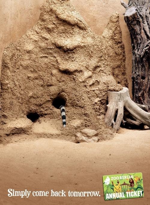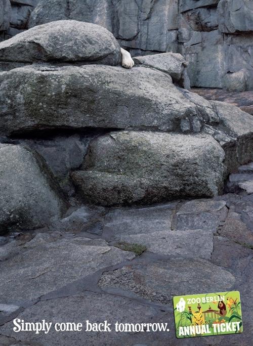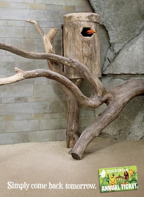 Агентство Scholz & Friends для Zoo Berlin: приходите завтраВсе звери попрятались, когда вы были в зоопарке? Вы никого не увидели? Именно такую ситуацию показывает на этих плакатах агентство Scholz & Friends. Но не расстраивайтесь, ведь теперь зоопарк Zoo Berlin предлагает вам годовой абонемент, по которому вы можете приходить в зоопарк хоть каждый день. Надпись: "Просто приходи снова завтра. Zoo Berlin. Годовой абонемент." Агентство: Scholz & Friends, Берлин, Германия Творческий директор: Jan Leube, Matthias Spaetgens Копирайтер: Florian Schwalme Арт директор: Mathias Rebmann Фотограф: Matthias Koslik ![]() ![]() ![]() |