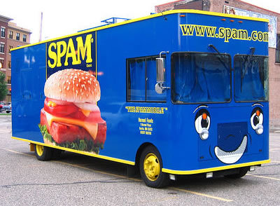 На самом деле Spam - это консервы из свиной лопатки и ветчины, созданные компанией Hormel Foods около создавшая 65 лет назад. Эта компания - одна из многих. Которые решили в качестве дополнительной наглядной рекламы своей продукции создать рекламу на колесиках - спаммобили.