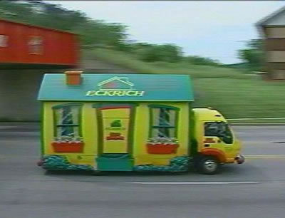 Этот рекламный автомобиль выглядел как платформа в виде шоколадки компании Hershey's, на которой находились три огромные конфеты из серии Kisses («поцелуи»). В одной такой «конфете» находилась кабина грузовика, а в других лежали бесплатные образцы продукции, которую раздавали детям на улицах городов.