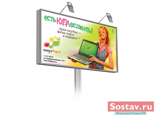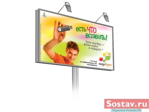 "Ноутбум": есть что вставить и есть куда вставитьМагазин портативной техники "Ноутбум" проводит в Новосибирске рекламную кампанию, задача которой повысить летние продажи ноутбуков. Основное сообщение коммуникации гласит: покупатель ноутбука получает в подарок флэш-карту размером 1 Гб. Ядро целевой аудитории кампании составляет молодежь 20-25 лет. Вероятно, именно это обстоятельство и определило несколько фривольно-хулиганистую тональность кампании. Рекламная кампания использует такие каналы продвижения, как наружка, транспорт, флаеры в виде ноутбуков и флэшек для рассылки и раздачи, а также радиоролик. Кампания продлится до конца июля. Состав творческой группы: Рекламная группа "Мелехов и Филюрин" Идея печатной рекламы, сценарий радиоролика: творческий отдел "Мелехов и Филюрин" Дизайн печатной рекламы: Михаил Угожаев, Dagor (флаеры) Фото: Дмитрий Петреев Клиент-менеджер: Ольга Сгибнева