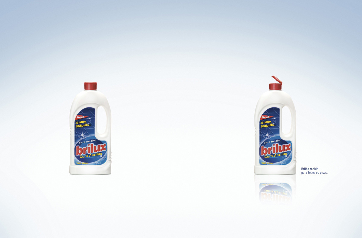 Cera Brilux: до и послеВот такой простой и изящный способ предложило бразильское агентство Gruponove для рекламы чистящего средства и полироли для полов Cera Brilux. Нам просто показывают поверхность до и после применения этого средства. Надпись: "Быстрый блеск для всех полов" Агентство: Gruponove, Ресифи, Бразилия Творческий директор: Fernando Lima Арт директор: Daniel Kahan Копирайтер: Flavio Galvao |
