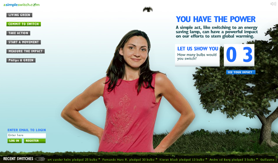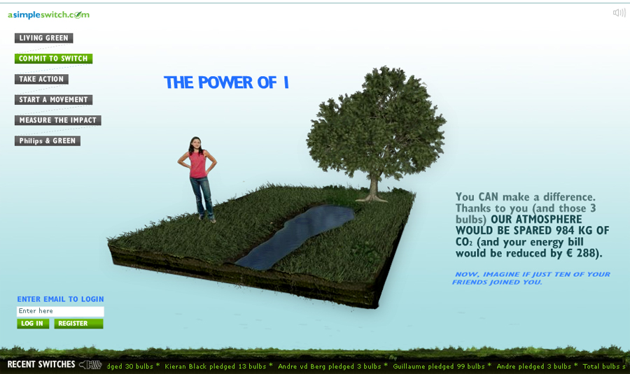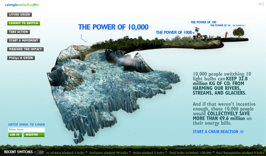 Выключи лампочкуЗнаете ли вы, что простое действие, вроде замены трёх лампочек в доме на энергосберегающие лампы, может принести гигантскую, грандиозную помощь нашей планете? Компания Philips совместно с Tribal DDB New-York, Tribal DDB Amsterdam, и unit9 продемонстрировали, как это бывает.Один человек, заменивший три лампочки на точно такие же, но сберегающие энергию, избавляет атмосферу от 984 килограммов угарного газа и изрядно уменьшает свой счёт за электричество. А теперь представьте, что то же самое сделают его друзья, и друзья друзей, и друзья друзей друзей… Всё это выглядит очень красиво и безумно эффектно. Так, что хочется прямо сейчас побежать в магазин за энергосберегающими лампочками Philips. www.asimpleswitch.com KAK.RU |