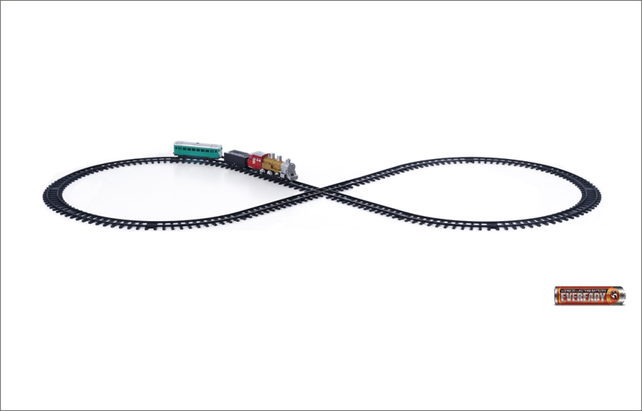 Батарейки Eveready вечныПо мнению индийского агентства Rediffusion DYR, батарейки марки Eveready работают настолько долго, что это сравнимо с вечностью, о чем и свидетельствует знак бесконечности, созданный из детской железной дороги, по которой вагончик может ездить вечно. Агентство: Rediffusion DYR, Индостан, Индия Творческий директор: Prashant Godbole Арт директор / Копирайтер: Parag M Patil |