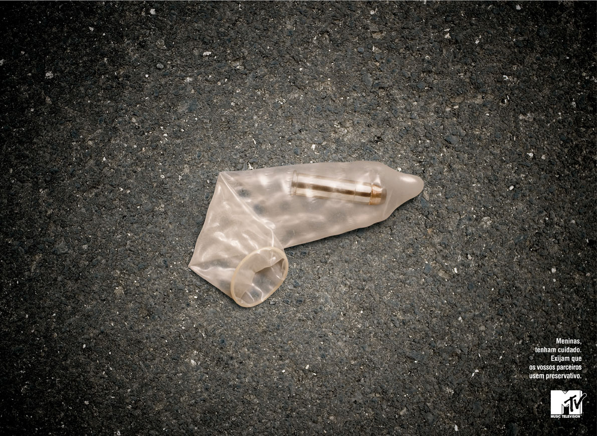 MTV сравнивает секс с выстрелом из пистолета. Так же опасноНи для кого не секрет, что в наше время секс может быт очень опасен по причине огромного количества распространяющихся венерических заболеваний. Агентство Ogilvy, создавая эту социальную кампанию для музыкального канала MTV, сравнивает половой акт без презерватива с выстрелом из пистолета. Надпись: "Девушки, защитите себя. Заставьте своего партнера надевать презерватив." Агентство: Ogilvy, Португалия Творческий директор: Paul Smith Творческий директор / Копирайтер: Edson Athayde Арт директор: Maria Amorim Продюсер: Stink Производство: Edson Athayde, Sergio Costa, Neil Harris |