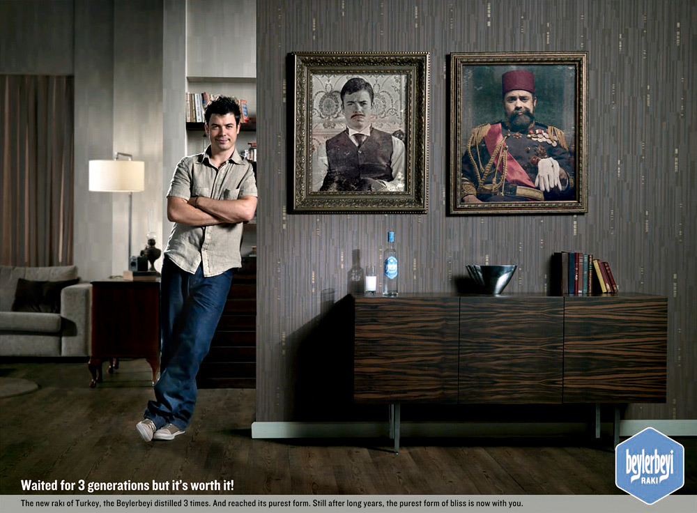 Турецкая ракия Beylerbeyi от деда к внукуРакия - это крепкий алкогольный напиток, получаемый дистилляцией ферментированных фруктов, повсеместно популярный на Балканах и в Турции. Эта рекламная кампания, созданная агентством TBWA, посвящена турецкой ракии Beylerbeyi, главной особенностью которой является то, что она подвергнута тройной дистилляции вместо обычной двойной. Именно поэтому на принтах представлено сразу три поколения мужчин, и только третьему достанется ракия. Надпись: "Новая турецкая ракия дистиллируется три раза. И достигает своей самой чистой формы. И после долгих лет самая чистая форма блаженства теперь с тобой." Рекламное агентство: TBWA, Стамбул, Турция Творческий директор: Murat Arli Копирайтер: Ates Cavdar Фотограф: Nejat Talas |