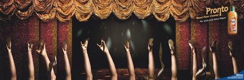 Средство для мытья полов SC Johnson Pronto опасно для танцовщицОказывается, что при использовании средства для чистки полов Pronto от компании SC Johnson нужно быть осторожным, иначе это может привести к трагическим последствиям. Один из таких случаев нам и показывает немецкое агентство Draftfcb, разработавшее этот рекламный принт: танцуя кан-кан, девушки поскользнулись и упали. Надпись: "Pronto. Средство для чистки деревянных полов. Для гладких и блестящих полов" Рекламное агентство: Draftfcb, Гамбург, Германия Творческий директор: Alexander Gutt, Bill Marbach Арт директор: Andreas Miller Копирайтер: Michael Zimmermann Фотограф: Felix Matthies |
