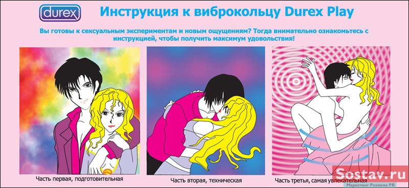 Pro-Vision оказало PR-поддержку необычному новому продукту под брендом DurexНовинка Durex, несмотря на всю пикантность, будет продаваться не в специализированных магазинах, а в крупных аптечных сетях. Под известной торговой маркой выйдет виброкольцо Durex Play", рассылку которого уже осуществило агентство Pro-Vision. В ее рамках журналисты ведущих российских СМИ смогли прослушать познавательный мастер-класс по правилам использования в исполнении специально подготовленных актеров. По замыслу производителей, Durex Play поможет россиянам добавить разнообразие и гармонию в сексуальную жизнь. |