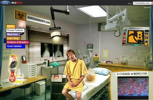 Ford борется со скукойАвтопроизводитель Ford запустил необычную интерактивную кампанию, продвигающую новый внедорожник 2008 Escape. Машина позиционируется как настолько быстрый джип, что он способен обогнать даже настигающую потребителей скуку. Скука, страшная болезнь 21-ого века, сделана лейтмотивом кампании «Boredom hurts» («Скука ранит»). Иллюстрировать эту идею было решено используя вымышленный персонаж - якобы реального эксперта, который ведет расследование причин и последствий скуки в современном обществе и «настоящих» доказательств того, что скука делает с людьми (MediaRevolution.Ru совсем недавно анализировала аналогичный кейс Nokia, построенный на этих же приемах). Креатив для кампании Ford разработан агентством JWT.