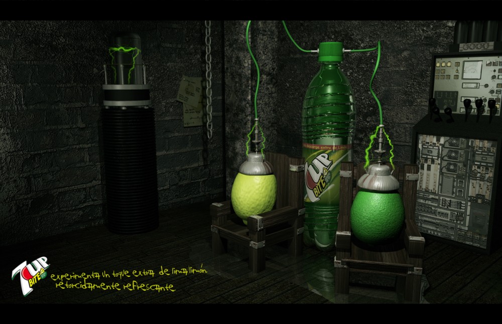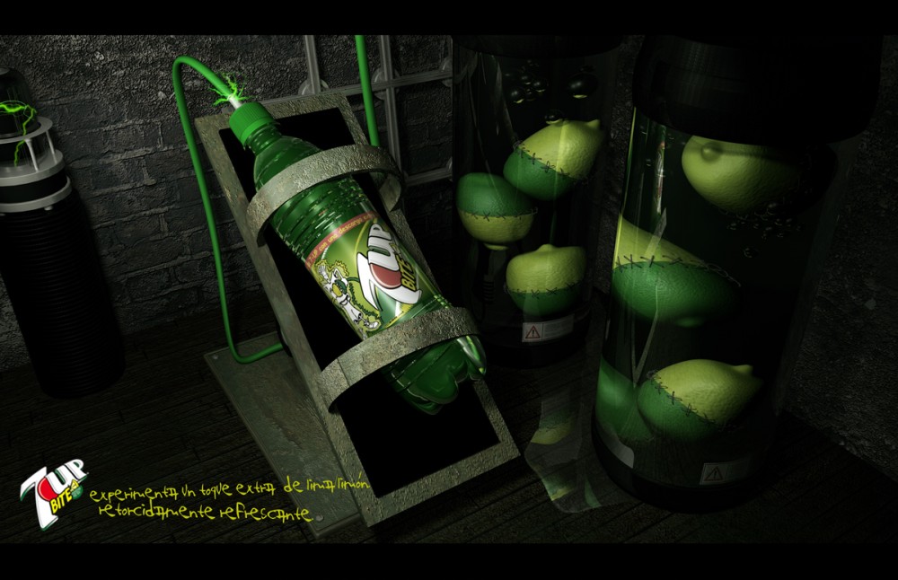 7up bite проводит эксперименты по скрещиванию лимона и лаймаОказывается, лаборатория компании PepsiCo, где разрабатывают новые вкусы прохладительных напитков, выглядит подобно лаборатории доктора Франкенштейна. Во всяком случае, именно так предстает она на этих плакатах, созданных для рекламы напитка 7up bite. Надпись: "Эксперимент экстра вкуса микса лимона и лайма" Агентство: BBDO, Гватемала Творческий директор: Victor Garcia Арт директор / Иллюстратор: Rene Valencia-Arellano Копирайтер: Carlos Lara, Rene Valencia-Arellano |