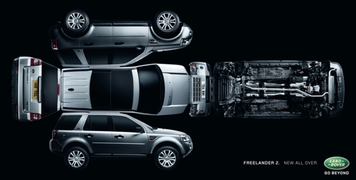 Land Rover Freelander 2 со всех сторон новыйБританское агентство RKCR/Y&R, разработавшее этот рекламный плакат, уверяет нас, что новая модификация автомобиля Land Rover Freelander - Freelander 2 - это новый автомобиль "со всех сторон" и наглядно показывает все его стороны, чтобы зрители могли убедиться в правоте этого заявления. Надпись: "Freelander 2. Новый со всех сторон. Land Rover" Агентство: RKCR/Y&R, Лондон, Великобритания Творческий директор: Mark Roalfe Арт директор: Jerry Hollens Копирайтер: Mike Boles Фотограф: Nick Georghiou |