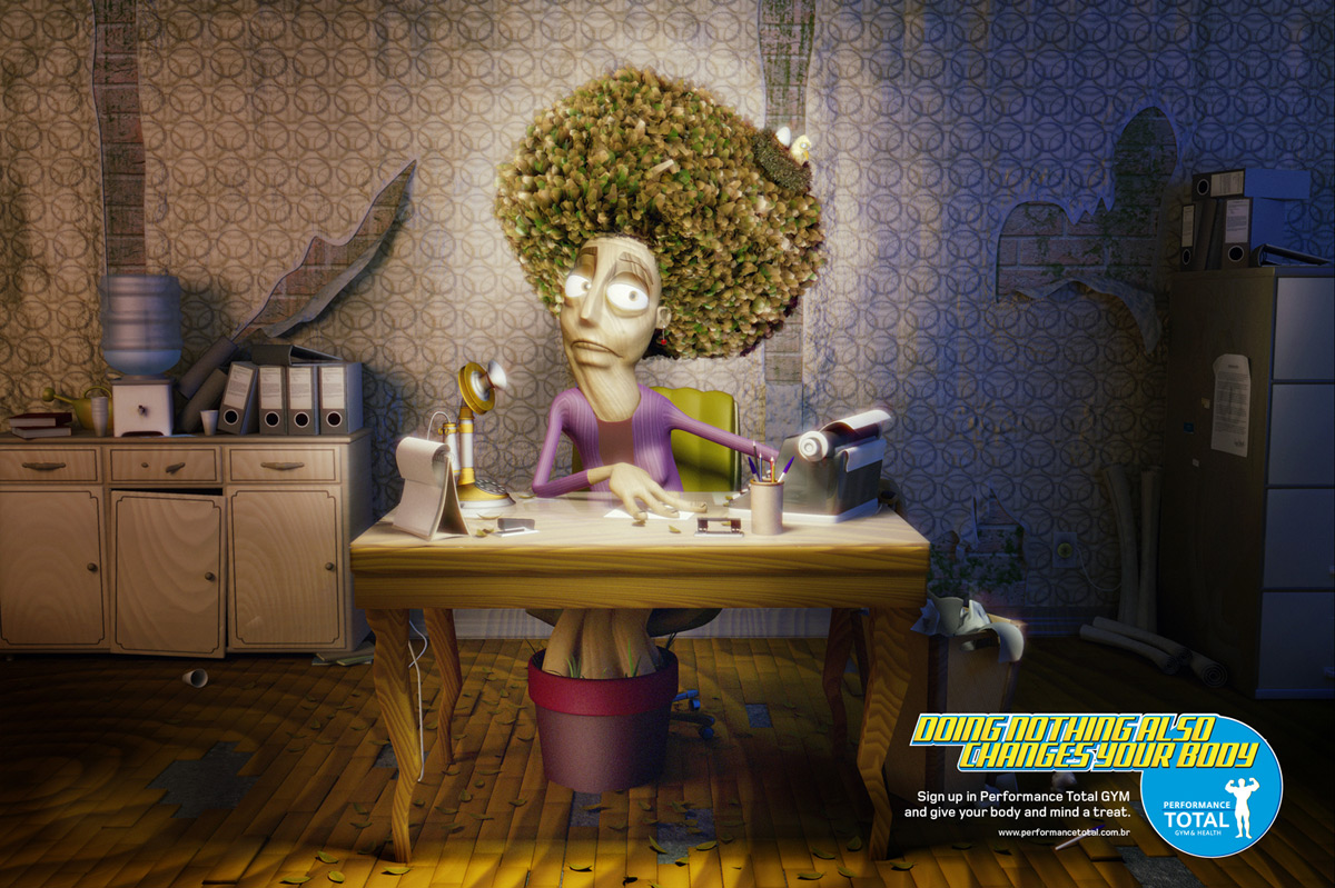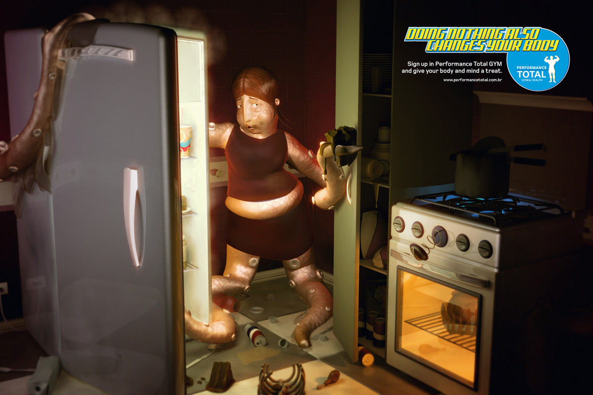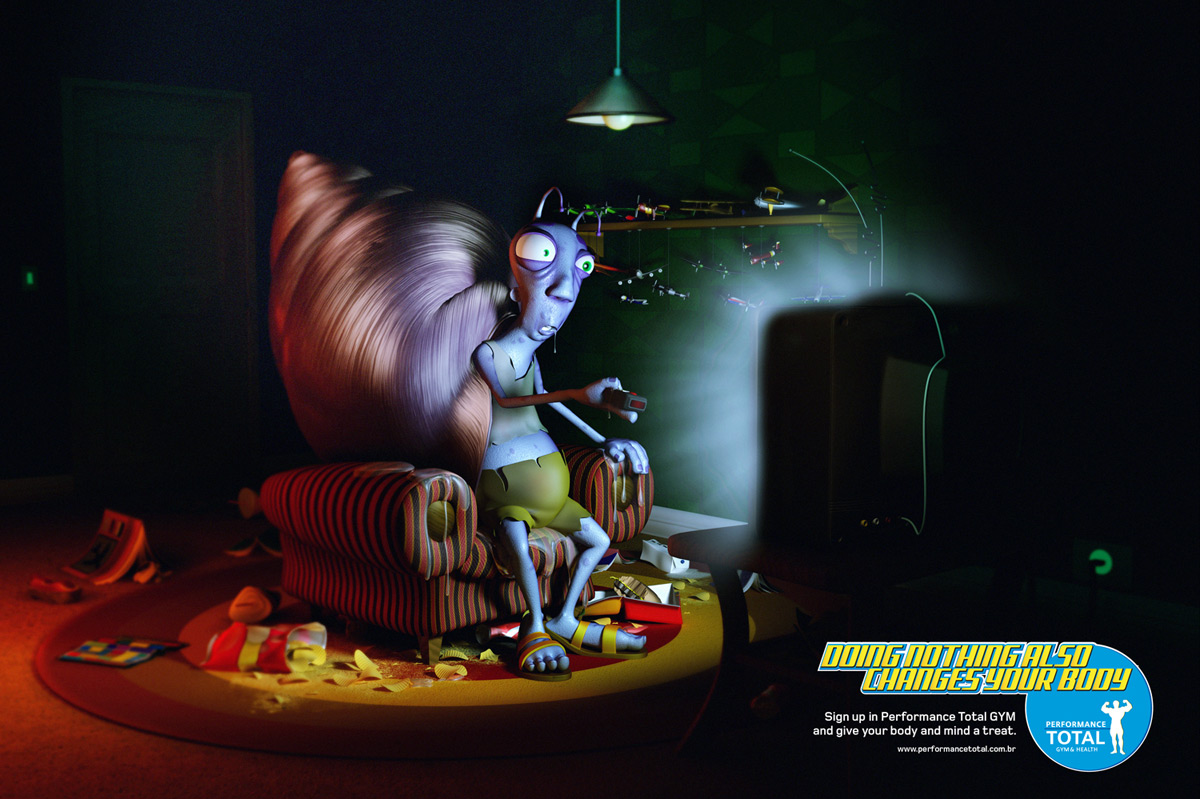 Люди-монстры в рекламе фитнес клуба Performance Total Gym & HealthБразильское агентство ag_407 считает, что тело ленивых и любящих покушать людей не всегда будет идеальным. В конце концов, посмотрев в зеркало, вы рискуете увидеть нечто подобное тому, что вы видите на этих принтах: человека с телом улитки, осьминога или растения. Так что записывайтесь в фитнес-клуб Performance Total Gym & Health, и вы никогда не будете таким. Надпись: "Ничего не делание тоже меняет твое тело. Запишись в Performance Total Gym и доставь своему телу и разуму наслаждение. www.performancetotal.com.br" Агентство: ag_407, Сан-Паулу, Бразилия Творческий директор: Andre Felipe, Selma Navarro Арт директор: Gabriel Mattar Копирайтер: Daniel Zago Иллюстратор: Sant |