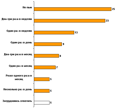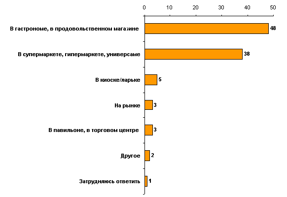Каждый четвертый россиянин пьет соки два-три раза в неделюВ опросе, проведенном в июле текущего года в рамках очередной волны общероссийского омнибуса, приняло участие 1605 человек, в возрасте от 18 лет и старше. Статистическая погрешность не превышает ± 2,5%. Респондентам был задан вопрос: Как часто Вы пьете соки/нектары в фабричной упаковке? Ответы распределились следующим образом % ![]() Четверть участников опроса пьют соки и нектары два-три раза в неделю. Чаще всего это жители больших городов (32%), молодые люди от 18 до 24 лет (37%), респонденты с высшим образованием (31%) или студенты (41%). Примерно столько же опрошенных (25%) ответили, что не пьют упакованные соки в принципе. В основном об этом говорили жители юга России (35%), респонденты, живущие в сельской местности (36%), каждый второй интервьюируемый старше 60 лет. Интересно, что среди респондентов, не употребляющих соки, продаваемые в фабричной упаковке, оказалось больше мужчин (27%), чем женщин (22%). Выяснилось также, что респондентов, пьющих соки реже одного раза в месяц (5%) и чаще одного раза в день (5%), одинаковое количество. 13% интервьюируемых пьют сок, как минимум, раз в неделю. В основном это те, кому за тридцать (18%), безработные или временно неработающие россияне (19%), граждане со средним доходом (15%). Респондентам был задан вопрос: Упаковки соков/нектаров какого объема чаще всего покупают в Вашей семье? Ответы респондентов в зависимости от дохода распределились следующим образом % ![]() Две трети респондентов (65%) из числа опрошенных со средним доходом чаще всего покупают соки в литровых упаковках. Значительно меньше граждан, ответивших также, оказалось среди лиц с высоким заработком (53%). Респонденты с достатком выше среднего, судя по данным опроса, в основном пьют сок из полуторалитровых емкостей (22%). По два-три литра сока чаще покупают жители больших городов (23%), респонденты в возрасте от 35 до 44 лет (23%), рабочие (24%) или служащие без высшего образования (22%). По 0,2 – 0,25 литра – респонденты от 25 до 34 лет (13%), служащие без высшего образования (12%). Респондентам был задан вопрос: Где Вы или члены Вашей семьи покупаете соки/нектары чаще всего? Ответы респондентов распределились следующим образом % ![]() Практически половина участников исследования ответили, что они и их домочадцы покупают соки в гастрономах или продовольственных магазинах (48%). На втором месте по популярности оказались супермаркеты, гипермаркеты и универсамы. Более трети респондентов (38%) покупают соки именно здесь. 5% опрошенных приобретают соки в киосках и ларьках. Рынки и павильоны набрали лишь по 3% голосов. В крупных магазинах (супермаркеты, гипермаркеты и универсамы), как и следовало ожидать, чаще всего закупаются руководители (52%) и граждане с высоким доходом (60%), а на рынках – пенсионеры (6%), респонденты старше 60 лет (8%). www.rmh.ru |