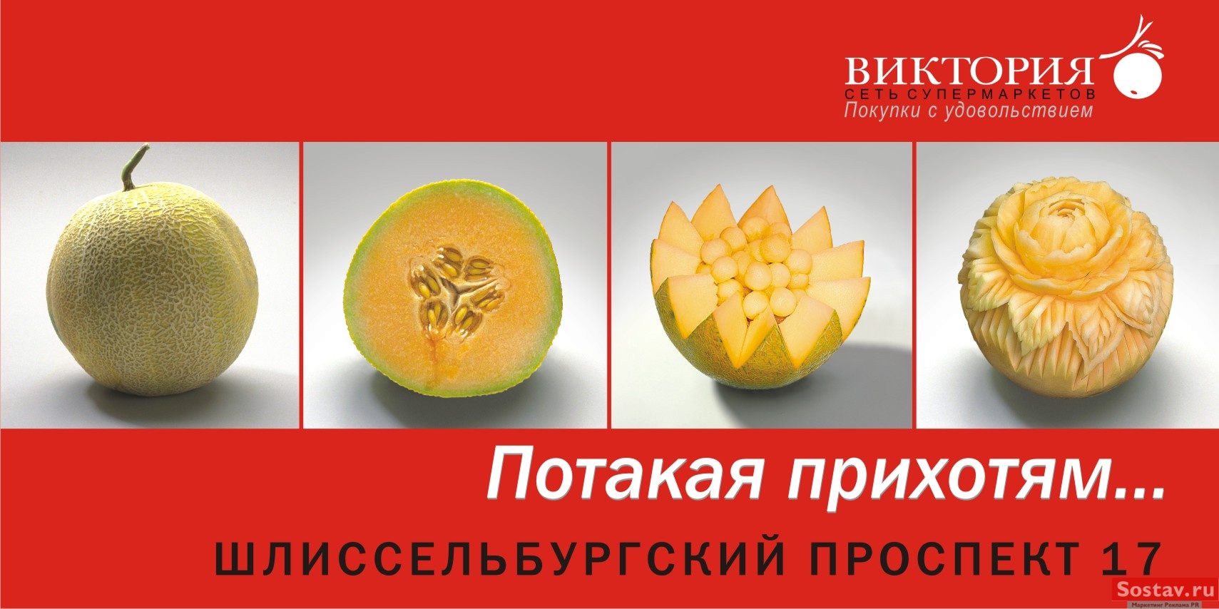Для рекламы "Виктории" дизайнеров обучили тайскому карвингуДизайн-студия "Аэроплан" (Санкт-Петербург) по заказу сети супермаркетов "Виктория" (Калининград) подготовила концепцию рекламной кампании сети для Калининграда и Санкт-Петербурга. Название кампании: "Потакая прихотям". Она представляет собой серию щитов с изображениями фруктов в различной нарезке - от целого плода до карвинга. Ради этой кампании дизайнерам пришлось пройти курс тайского карвинга, так в городе практически нет специалистов в этой области. Кампания уже началась в Калининграде и получила положительные результаты. "Виктория" уже сообщила нам о своем намерении развивать созданную нами тему. |