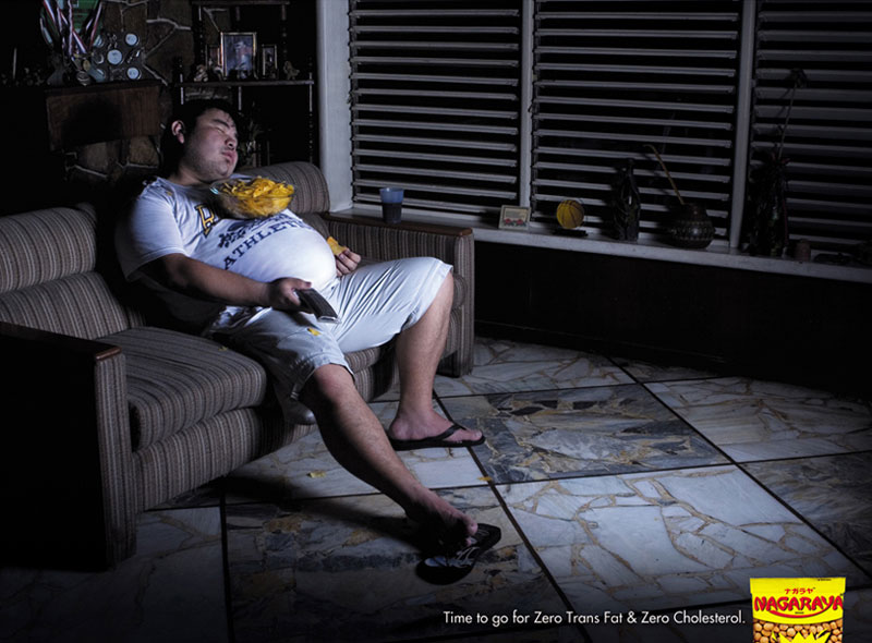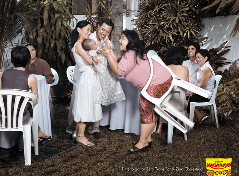 С орешками Nagaraya у вас не будет такой жирной попыМногие люди жить не могут без вкусной, но вредной пищи, и в последствии это дает о себе знать. Достаточно посмотреть на героев этих рекламных принтов, созданных филиппинским агентством PC&V Communications для орешков Nagaraya, которые не содержат вредных жиров и холестерина. Так что если хотите пожевать, берите пачку Nagaraya. Надпись: "Время отказаться от вредных жиров и холестерин. Nagaraya" Агентство: PC&V Communications, Филиппины Творческий директор: Ariel Comia, Socky Pitargue, Dingdong Baes, Kat Gomez-Limchoc Арт директор: Carlos Guaderrama, Bong Alfonso, Ian Areglado Копирайтер: Katrina Primavera |