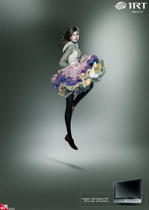 Телевизоры IRT - реально плоскоПлоский телевизор - это конечно хорошо, но при этом и изображение у него должно быть хорошее. Оба этих качества и совмещают в себе телевизоры IRT. Креаторы из чилийского агентства Marcas & Conceptos решили показать это, представив на принтах очень четкие, яркие изображения, но при всем при этом они совершенно плоские. Надпись: "Ультра реалистичное, ультра плоское." Агентство: Marcas & Conceptos, Сантьяго, Чили Творческий директор: Enrique Garcia Арт директор: Rodrigo Elissalde Копирайтер: Felipe Plaza Иллюстратор: Ricardo Salamanca Фотограф: Ivan Petrovich |