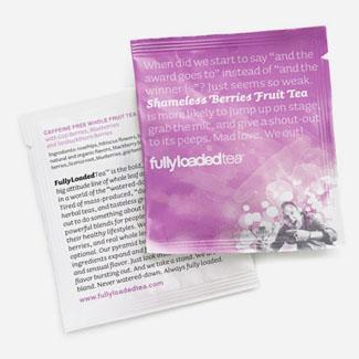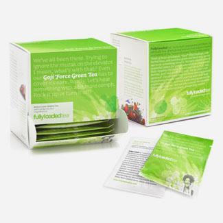 Устав от массовой продукции, чёрным чаем в наполненных пылью пакетиках, безвкусных зелёных и горьких травяных, FullyLoadedTeaTM решили-таки что-нибудь с этим сделать. И создали они линию сильных смесей для людей, жаждущих вести здоровый образ жизни, и употреблять в пищу всё натуральное: фрукты, ягоды, и настоящий чай в виде листиков, а не трухи. Всё это заключили в пирамидальные пакетики и как бы успокоились. Потому что ну вроде всё сделали: модный тренд «здорового образа жизни», красивые пирамидальные пакетики и пр. Осталось зацепить целевую аудиторию из молодых профессионалов упаковкой и красивой айдентикой.
