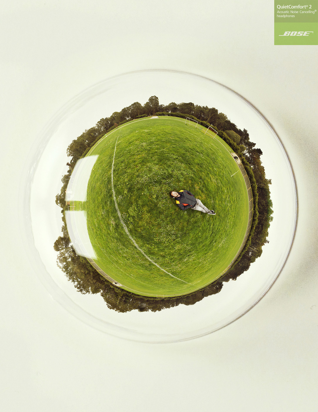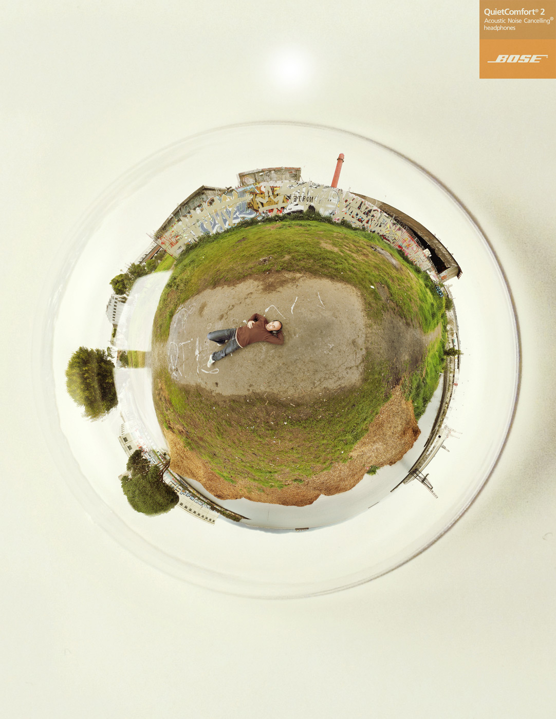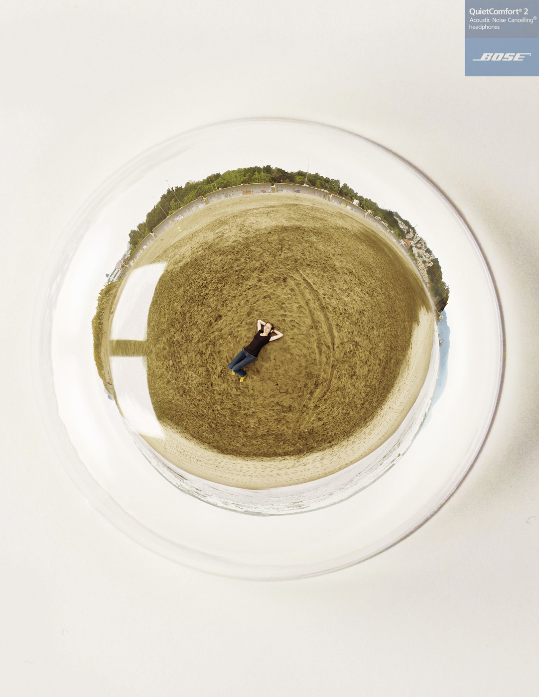 Наушники BOSE - музыка вокругВот так студенты американской школы рекламы Miami Ad School представляют себе эффект от наушников Bose QuietComfort 2, главной особенностью которых является то, что они устраняют посторонние акустические шумы. В этих наушниках вы в центре всего мира.Надпись: "Bose QuietComfort 2 Наушники, устраняющие акустический шум." Школа Рекламы: Miami Ad School, Сан-Франциско, США Арт директор / Фотограф: Croix Gagnon, Bryan Denman |