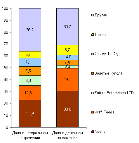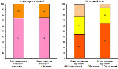 Более 88% потребителей кофе за последние три месяца покупали растворимый кофеСогласно данным SSP (Single Source Panel), собранным специалистами Ромир в период с апреля по июнь текущего года (2 квартал 2007 года), доля растворимого кофе (включая кофейные напитки) в натуральном выражении занимает 69%. Более 88% домохозяйств-потребителей кофе хотя бы однажды в указанный период покупали растворимый кофе. 18,2% семей выбирали кофе в зернах и 7,6% - молотый. Как минимум раз в три месяца около четверти домохозяйств совершали покупку натурального кофе. В ходе исследования были получены данные от трех тысяч домохозяйств (около 8100 панелистов) из крупных городов России с населением 500 тысяч человек и более. Основной метод сбора информации – сканирование штрих-кодов покупок в online режиме. ![]() Доля растворимого кофе (включая кофейные напитки) в натуральном выражении занимает 69%. Это значимо больше молотого и кофе в зернах (31%). Более 88% домохозяйств-потребителей кофе хотя бы однажды в период с апреля по июнь текущего года покупали растворимый кофе. 18,2% семей выбирали кофе в зернах, а 7,6% - молотый. Среди потребителей, выбирающих растворимый кофе оказалось больше тех, кто покупает сублимированный кофе (55,1%). Гранулированный – на втором месте по популярности (36,8%), порошковый – на третьем (21,9%). ![]() Картина с растворимым кофе сложилась следующая: самую большую долю в натуральном выражении занял сублимированный кофе (44%). Гранулированный составил третью часть (33%), а на долю порошкового напитка пришлось 22%. Как и следовало ожидать, молотый кофе (74%) в объемах покупок имеет большую долю, чем кофе в зернах (26%). Производители ![]() Сортировка по доле в натуральном выражении Лидером категории кофе является «Nestle», его доля составляет 22,9% в натуральном выражении, следом идет «Kraft Foods»(12,3%), замыкает тройку лидеров производитель кофейных напитков «Future Enterprises» (8,3%). Закрывают пятерку основных игроков рынка кофе российские производители – «Золотые купола» и «Орими Трейд» (7,5% и 7,1% соответственно). http://romir.ru/ |
