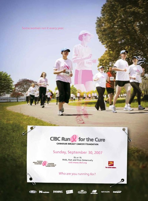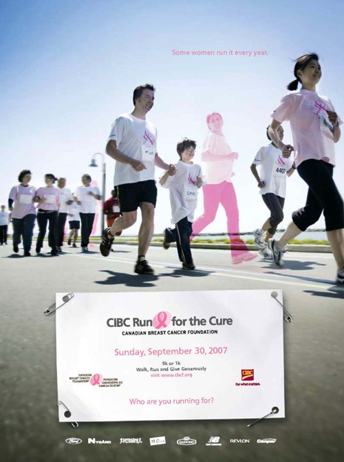 Благотворительный марафон с женщинами-призраками от Canadian Breast Cancer FoundationКанадская организация Canadian Breast Cancer Foundation утраивает каждый год благотворительный марафон в поддержку женщин, больных раком груди, и с цель привлечения к этой проблеме общественного внимания. А эта кампания, созданная агентством Cundari Group призвана показать, что каждый участник этого марафона бежит с мыслями о ком-то близком, например, о жене, матери, о коллеге по работе.Надпись: "Некоторые женщины пробегают его каждый год. А за кого бежишь ты?" Агентство: Cundari Group, Торонто, Канада Творческий директор: Fred Roberts Арт директор: Mike Dietrich Копирайтер: Tim Das Фотограф: Chris Gordaneer Медиа директор: Anne Wood |
