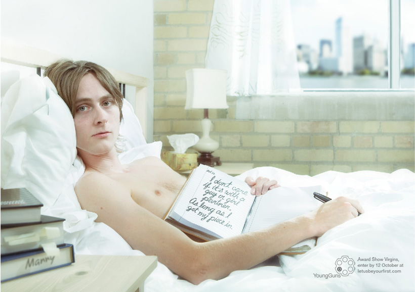 Рекламной девственности можно лишиться на Young Guns 2007"Разреши нам быть у тебя первыми" - именно под таким слоганом проходит эта рекламная кампания, разработанная канадским агентством Taxi для очередного фестиваля рекламы Young Guns 2007, участие в котором могут принимать только молодые креаторы.В состав кампании входит интернет-сайт и несколько плакатов, с которых молодые рекламисты открывают нам свои самые сокровенные мысли: "Мне 26, и меня еще никогда не награждали. Может, со мной что-то не так?" "Мне неважно, кем будет мой партнер - парнем или девушкой. До тех пор, пока я вкладываю туда часть себя." "Я боюсь, что если я войду сразу в несколько категорий, то люди подумают, что я шлюха рад наград." Агентство: Taxi, Канада |