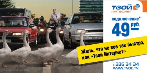ТКТ использует гусей, чтобы подчеркнуть скорость своего интернетаВ сентябре этого года «Телекомпания Санкт-Петербургское кабельное телевидение» (ТКТ) запускает новую рекламную кампанию услуги «Твой Интернет». Как рассказали AdLife.spb.ru в ТКТ, новая рекламная кампания в поддержку брэнда «Твой Интернет» разработана совместно с рекламным агентством «Небо» и является логическим и стилистическим продолжением имиджевой кампании 2006-го года со слоганом «Если бы все было так быстро, как твой Интернет...», окончание которого было адаптировано под определенные носители и сообщало о выгоде «Твоего Интернета» в конкретных жизненных ситуациях. По результатам рекламной кампании в 2006 году количество подписчиков услуги увеличилось в 10 раз - с двух до двадцати тысяч. «Новый слоган «Жаль, что не все так быстро, как твой Интернет...» привязан к распространенным и понятным каждому жизненным ситуациям, когда недостаток скорости ощущается наиболее остро», - пояснили в ТКТ. Важной частью новой рекламной кампании услуги «Твой Интернет» станет выход в сентябре в эфир телевизионных каналов рекламных роликов, разработанных агентством «Небо».![]() «Как мне кажется, концепция очень интересная, она способна "зацепить" и вызвать эмоции у любого. В самих же роликах мы старались показать самое привлекательное для потенциального клиента в содержании нашей услуги - ее скорость. Считаю, нам это удалось полностью, а вот насколько успешно, мы будем судить по окончании рекламной кампании», - прокомментировала Елена Паснюк, директор по маркетингу компании ТКТ. По словам специалистов рекламного агентства «Небо», предыдущие кампании «Твоего Интернета» были лаконичны, построены только на тексте. «Сейчас мы пошли дальше: у рекламного сообщения есть видеоряд. Кроме того, в прежних имидежевых кампаниях не была задействована телевизионная реклама, а теперь на экран выйдут сразу два ролика», - рассказали в агентстве. Рекламные сообщения кампании «Твой Интернет» представлены в наружной рекламе, на лайт-боксах в метрополитене и постерах формата А4, размещенных в вагонах поездов. Помимо этого ТКТ использует метод разноски буклетов в домах, где имеется техническая возможность предоставления услуги. Также задействована баннерная реклама на развлекательных и информационных сайтах. adlife.spb.ru |