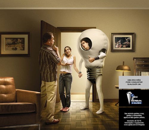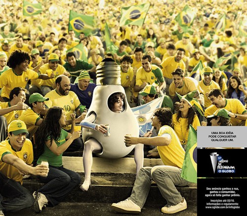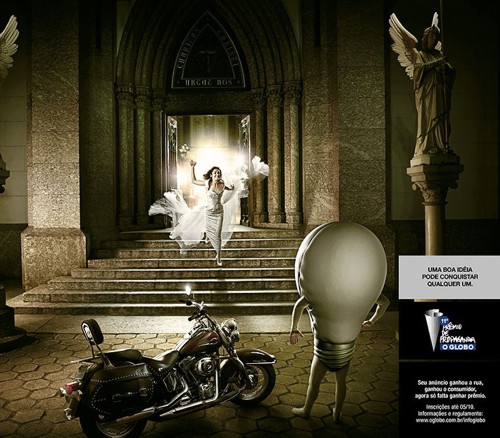 Premio de Propaganda O Globo: О! Идея пришла!Эту рекламную кампанию разработало бразильское агентство DPZ Propaganda по заказу Premio de Propaganda O Globo, международного конкурса печатной рекламы в Бразилии. Центральной фигурой всех принтов является лампочка, являющаяся признанным символом идеи, а основная мысль кампании состоит в том, то действительно классная идея может зацепить любого.Надпись: "Одна хорошая идея может завоевать любого" Агентство: DPZ Propaganda, Бразилия |