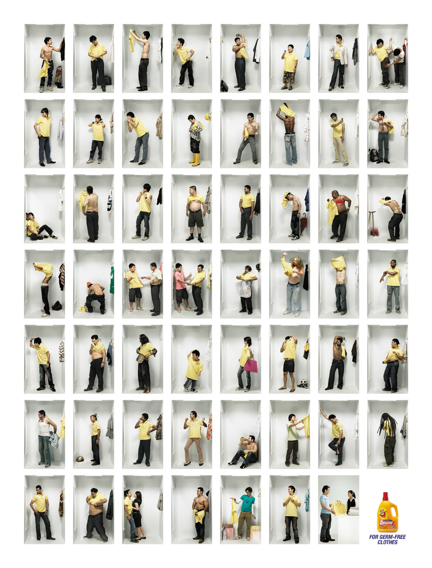 Dynamo: что только не творится в примерочных кабинкахВы можете себе представить, сколько народу побывало до вас в примерочной кабинке, меряя эту маячку? Если нет, то малазийское агентство Saatchi & Saatchi с удовольствием поможет вам в этом, ведь именно оно разработало этот рекламный принт для чистящего средства Dynamo, уничтожающего микробы в одежде.Надпись: "Для одежды без микробов. Моющее средство Dynamo" Агентство: Saatchi & Saatchi, Малайзия Главный творческий директор: Edmund Choe, Adrian Miller Арт директор: Lydia Lim, Ong Kien Hoe Копирайтер: Lydia Lim Продюсер: Loke Sai Kit |