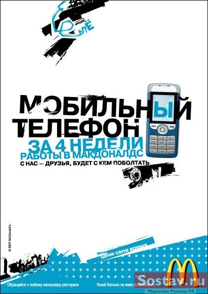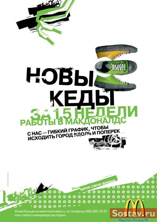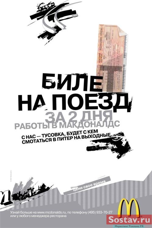 Рекламное агентство Leo Burnett Moscow подготовило имиджевую кампанию по продвижению McDonald's как работодателя. Кампания пройдет под девизом "Работай в McDonald's. Цени свое время" и расскажет о преимуществах работы в McDonald's.