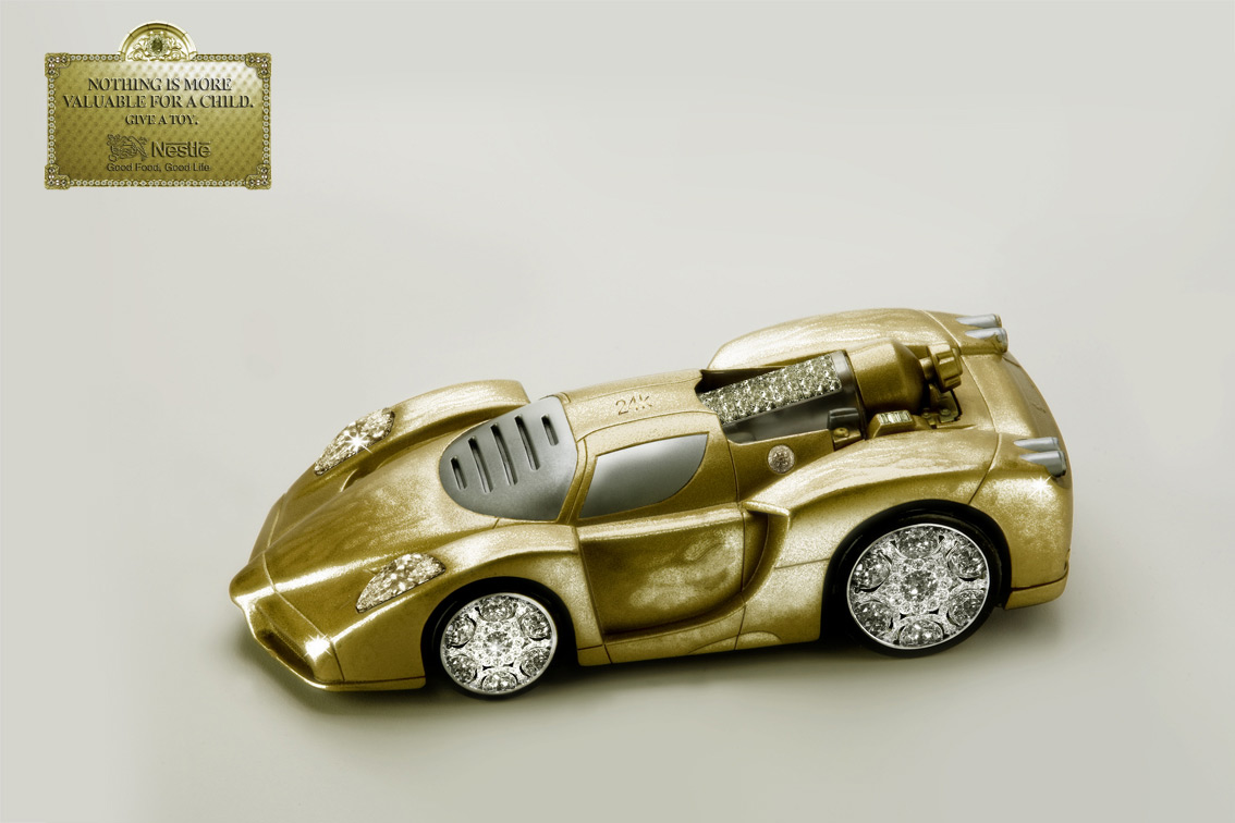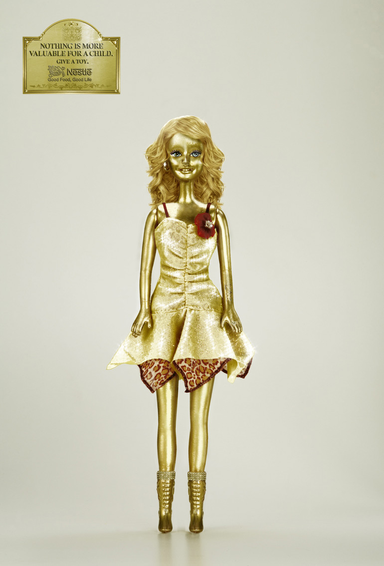 Ну очень ценные игрушки в социалке от NestleВзрослый человек знает, что золото и драгоценные камни представляют из себя большую ценность, для ребенка же, по мнению агентства Publicis Venezuela и концерна Nestle, нет ничего важнее и ценнее игрушки. Смешивая эти два понятия, и появились на свет эти принты социальной кампании, призывающей дарить игрушки детям.Надпись: "Нет ничего более ценного для ребенка. Дайте игрушку. Nestle. Хорошая еда, Хорошая жизнь." Агентство: Publicis Venezuela Творческий директор: Demian Campos Арт директор: Andreina Bello Копирайтер: Jessica Bodoutchian |
