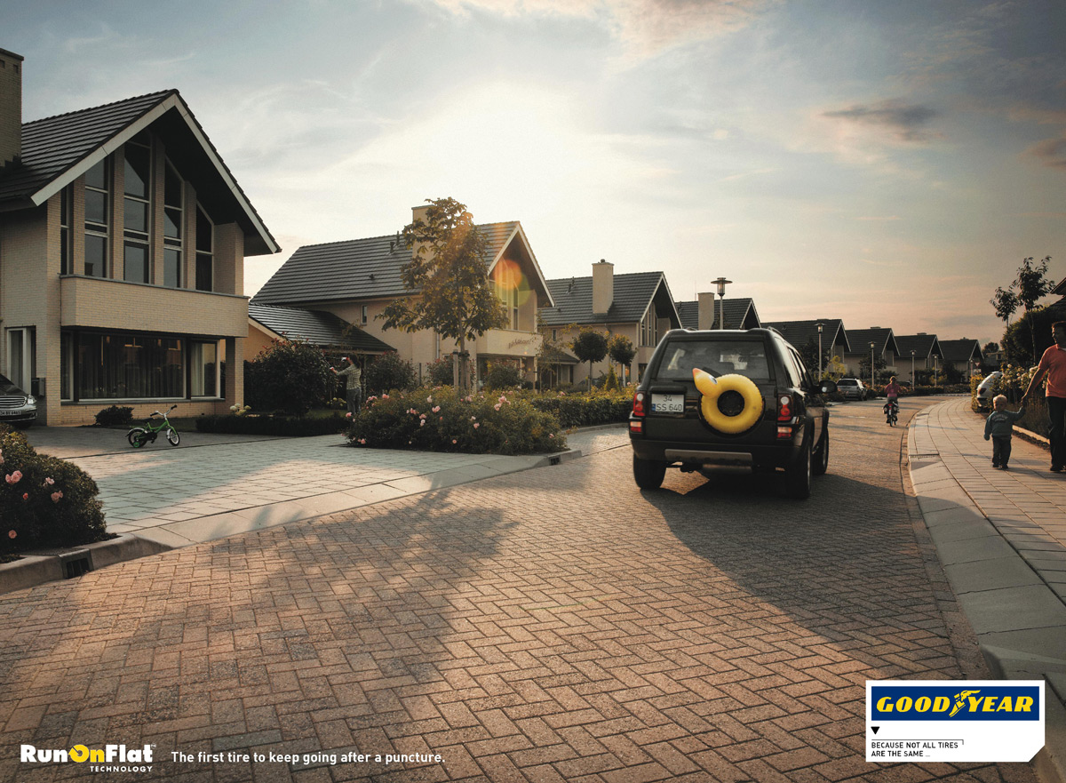 С шинами Goodyear запаска больше не нужнаТурецкое агентство Grey неспроста разместило на задней дверце внедорожника детский спасательный круг. Дело в том, что на этом джипе стоят шины Goodyear, на которых можно ехать даже после прокола. Именно поэтому этому автомобилю вовсе не нужна запаска.Надпись: "Технология Run on Flat. Первые шины, которые продолжают движение после прокола." Агентство: Grey, Стамбул, Турция Творческий директор: Engin Kafadar, Tu?bay Bilbay, Tevfik Naipo?lu Арт директор: Tun? Tuncer Копирайтер: ?lhami Duman Фотограф: Maarten de Groot Пост-производство: Magicgroup |