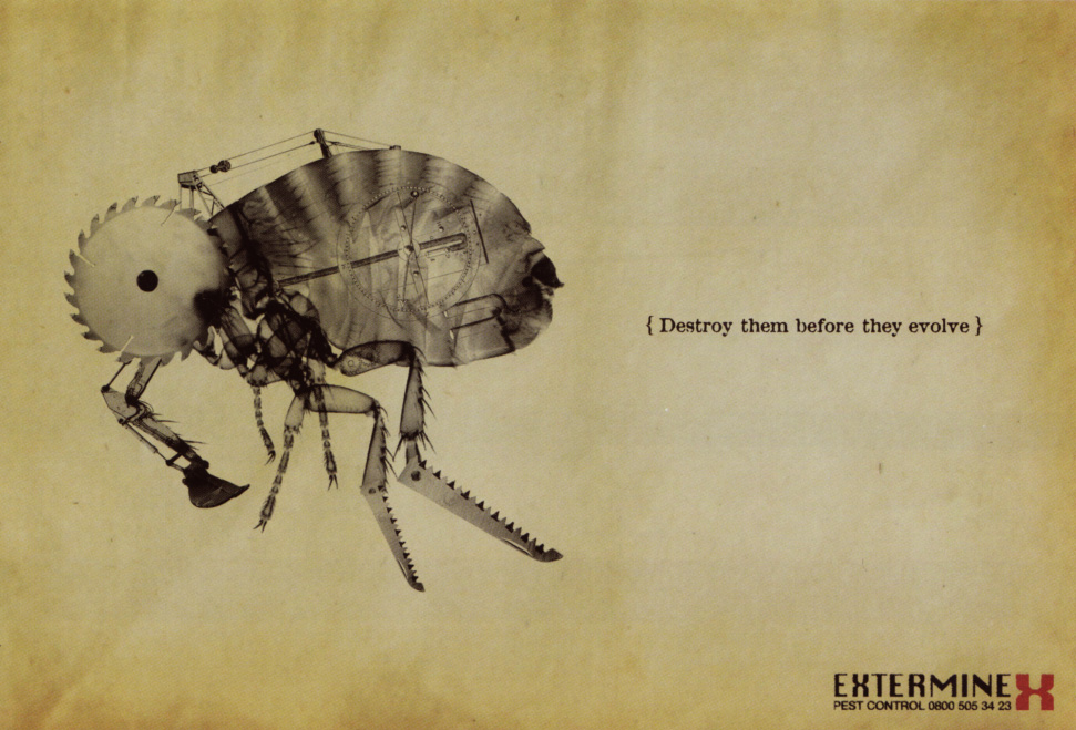 Насекомые-монстры в рекламе ExterminexАнглийское агентство Saatchi & Saatchi, разрабатывая эту рекламную кампанию для компании Exterminex, занимающейся борьбой с вредителями, создала уж слишком устрашающих насекомых, у которых вместо лап пилы и бритвы. С помощью этих принтов нас призывают уничтожить этих монстров, пока они действительно не стали такими.Надпись: "Уничтожь их прежде, чем они эволюционируют. Борьба с вредителями Exterminex." Агентство: Saatchi & Saatchi, Лондон, Соединенное Королевство Арт директор: Steve Carlin Копирайтер: Joel Bradley Иллюстратор: Steve Carlin |