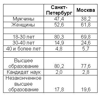 В силу недостаточной развитости рынка копирайтинга в Санкт-Петербурге, который, по сути, находится в самом начале своего становления, доля «зрелых профессионалов» в Москве выше. Другой интересной особенностью петербургского рынка можно отметить паритет обоих полов, тогда как в Москве, в среде копирайтеров и тех, кто рассматривает эту профессию в качестве основного направления развития своей карьеры, преобладают женщины.