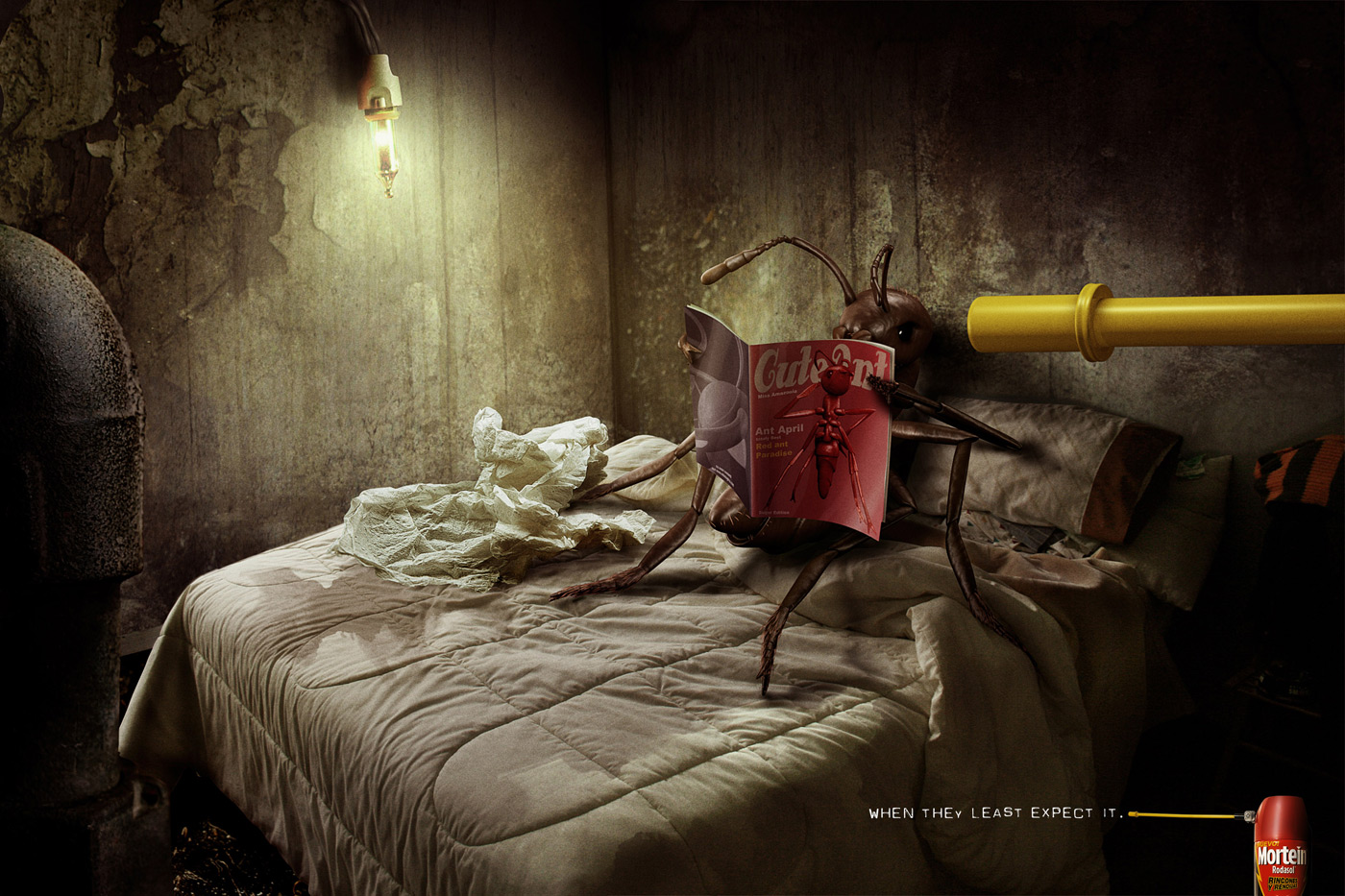 Агентство Euro RSCG очеловечило крыс, пауков и муравьев в рекламе инсектицида MorteinЭта рекламные принты разработаны чилийским агентством Euro RSCG для продуктов компании Mortein, выпускающей отрыву для домашних вредителей и насекомых, таких как крысы, мыши, тараканы, муравьи и т.д. На первом плакате, вдохновившись библейскими мотивами, агентство решило показать последний, благодаря Mortein, ужин крыс. А на двух других Mortein достанет насекомых тогда, когда они этого меньше всего ждут: на унитазе или в кровати с книгой.Надпись: "Когда они меньше всего ждут этого. Mortein Mortein. Убивает всех крыс" Агентство: Euro RSCG, Сантьяго, Чили Творческий директор: Lorena Hola Арт директор: Daniel Muller, Adolfo Lira Копирайтер: Diego Reyes Иллюстратор: Ricardo Salamanca Фотограф: Juan Pablo Montalva Другое: Jorge Balmaceda ![]() |