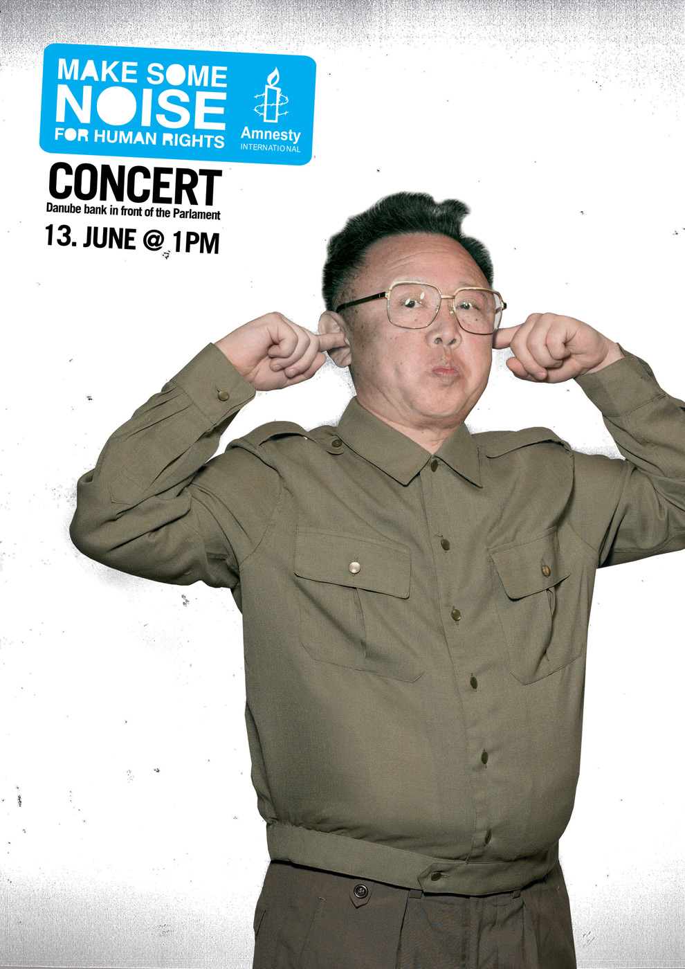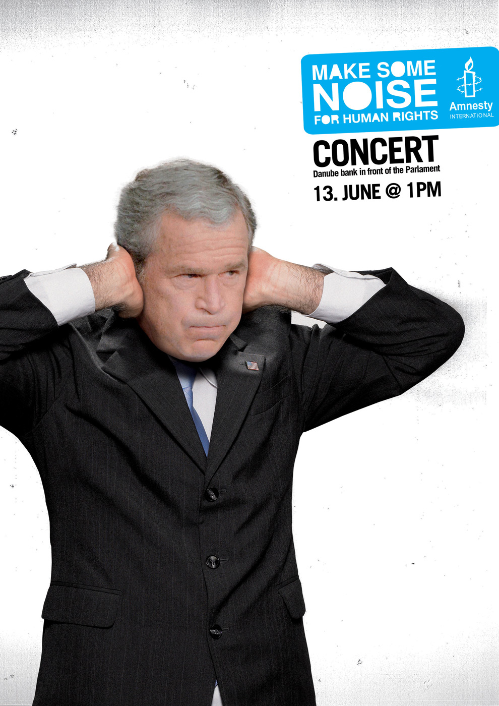 Amnesty International заставляет политиков закрыть ушиМеждународная неправительственная организация "Международная амнистия" (Amnesty International), борющаяся за права человека, предлагает немного пошуметь перед зданием венгерского Парламента и устраивает там концерт. А агентство DDB, создавшее эти принты, считает, что политикам это очень не понравится и приводит в пример президента Зимбабве Роберта Мугабе, главу КНДР Ким Чен Ира и президента США Джорджа Буша.Надпись: "Пошуми за человеческие права. Amnesty International. Концерт Danube bank на против Парламента." Агентство: DDB, Будапешт, Венгрия Творческий директор: Milos Ilic Арт директор: Lukasz Brzozowski Копирайтер: Milos Ilic, Lukasz Brzozowski Фотограф: Gabor Mate |