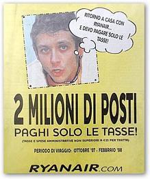 Одна из крупнейших мировых авиакомпаний Ryanair, считающаяся к тому же одной из самых дешевых в Европе, разместила в Италии рекламные плакаты с фотографией звезды Yamaha и подписью: "Я летаю с Ryanair, потому что должен оплатить налоги".