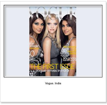 Тем более, что рекламировать их будет где – масштабную экспансию на индийский рынок уже начала издательская группа Conde Nast. Первый номер Vogue тиражом 50 000 экземпляров уже представили, и ожидается запуск журналов Glamour, Vanity Fair и Traveller, в засимости о того, насколько успешным станет Vogue по-индийски.