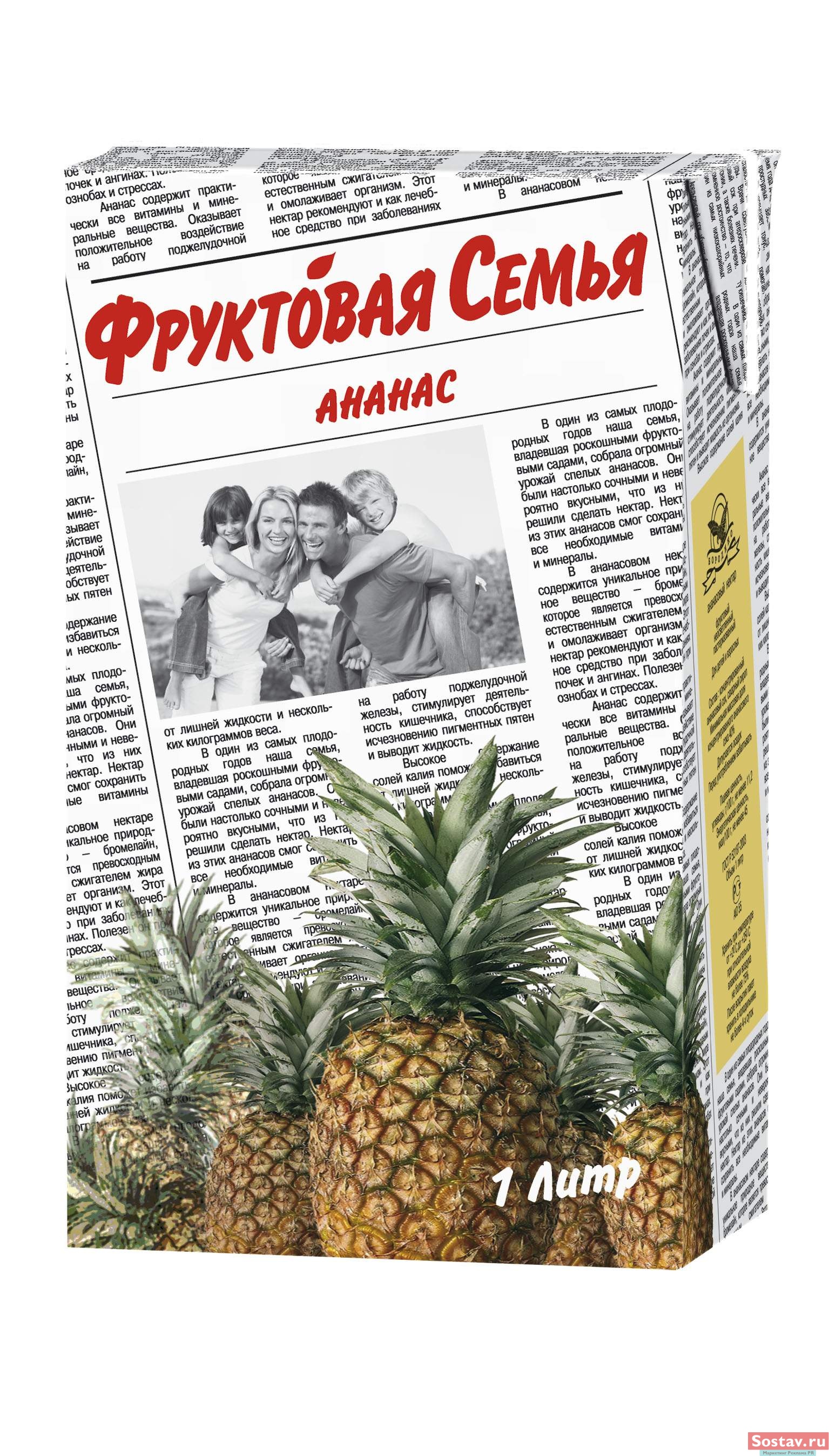 Компания рассчитывает на то, что бренд будет выделяться на полках магазинов среди большого выбора альтернативных соков компаний - конкурентов. Розничная цена сока на полке магазина составит около 25 рублей. Sostav.ru попросил прокомментировать упаковку "Фруктовой Семьи" Всеволода Селянского, креативного директора агентства Ultrabrand, которое работало над созданием упаковки сока "Моя семья": "Газета в применении к продуктам питания ассоциируется в первую очередь с солеными и слабосолеными продуктами вкупе с пивом: воблочка, селедочка, огурчики, помидочики и т.п. В крайнем случае, с семечками. В продолжение темы газеты, заголовок также должен быть газетным - цвет, листочки и вычурные гарнитуры не имеют права на жизнь. Единственный позитивный момент - возможность прочитать душещипательную историю о том, как "наша семья (знатных землевладельцев, вестимо) собрала огромный урожай спелых ананасов". Что касается названия, налицо яркий пример заимствования из многих источников сразу. Такие примеры на рынке есть, взять хотя бы "7Я" - урвали и у "Моей Семьи", и у "Я", да и с регистрацией проблем меньше. В представленном примере заимствование более прямолинейное - окучили и "Фруктовый сад" и многострадальную семью - хочется задать вопрос: а почему не "Любимая Семья"? Или связываться с ВБД себе дороже?" Учредитель, управляющий партнер и креативный директор компании BoxSide Алексей Муразанов заявил Sostav.ru, что уверен в том, что идея упаковки сока "Фруктовая семья" была позаимствована из их прошлогогдней работы для торговой марки компании "Раздолье" - жареных семечек "Фишка". Евгения Мелешко, Sostav.ru |