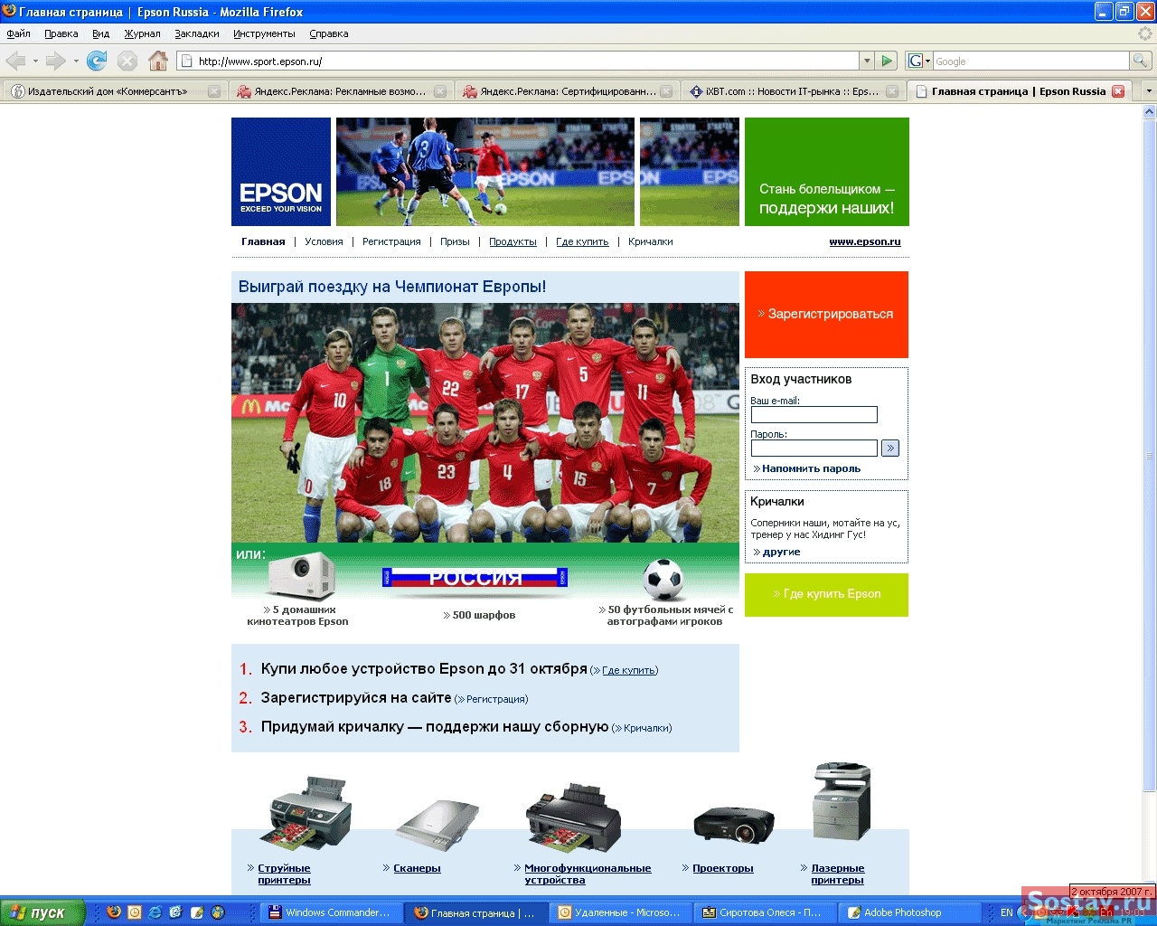 Компания Epson, официальный спонсор Сборной команды России по футболу, проводит акцию "Стань болельщиком - поддержи наших".