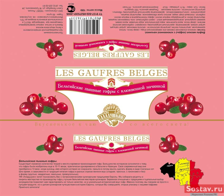 "Art-fact" потянуло на сладенькоеБрендинговое агентство "Арт-факт" ("Art - fact") разработало дизайн для гофр ТМ "Аладушкин", в соответствии с ее концепцией, выраженной в слогане "Вкусненькое к чаю со всего света". Для тех, кто не знает, гофры - это мягкие вафли, традиционно выпекающиеся в Бельгии."Аладушкин" собирает лучшие сдобные рецепты и дает возможность познавать мир через кулинарные продукты, традиционные для народов разных стран. Гофры будут выпускаться классические и с различными начинками. |