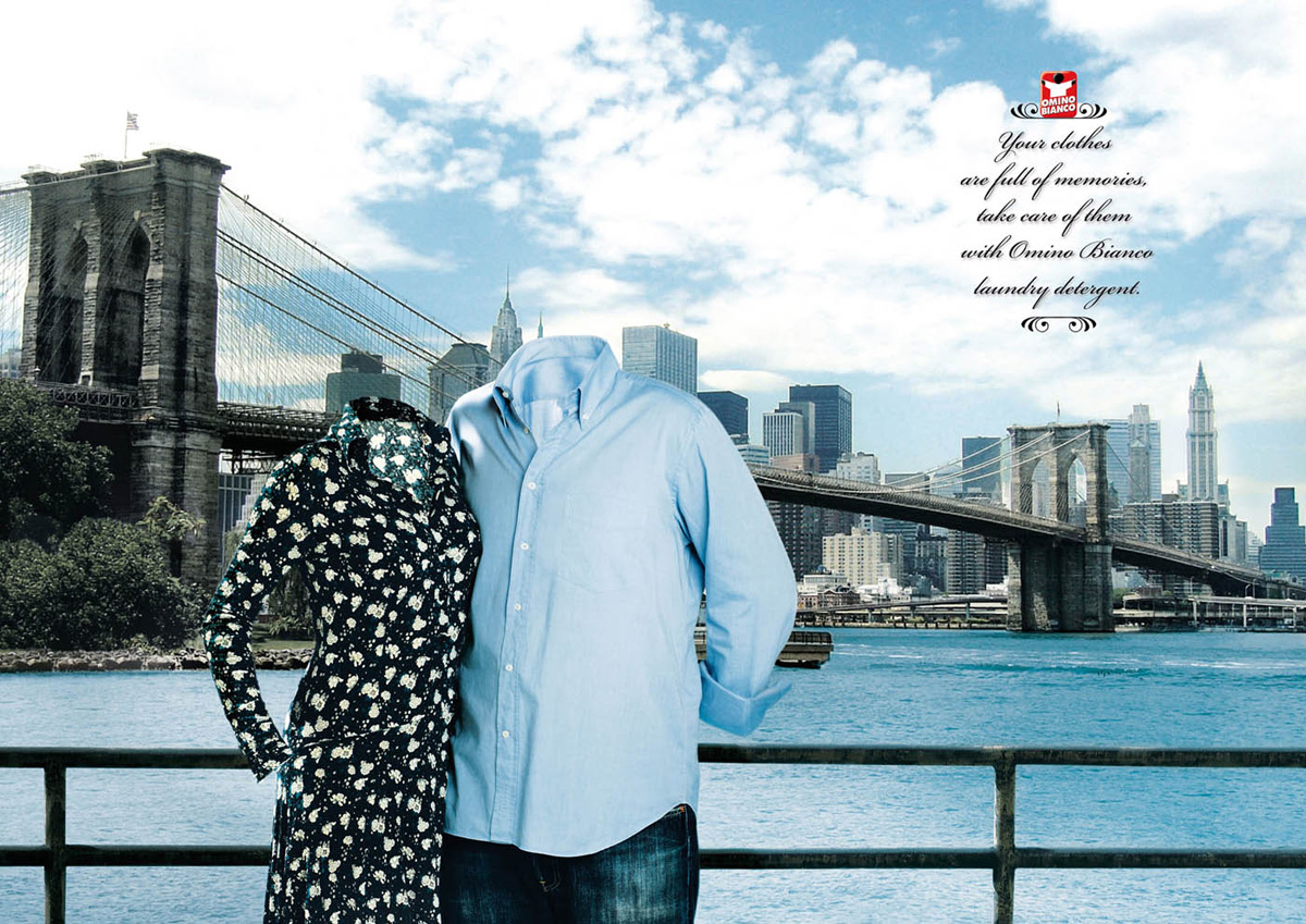 Omino Bianco: ваша одежда все помнит…Непременным спутником ваших путешествий, праздничных событий, да и всей вашей жизни является ваша одежда. Именно поэтому, считает итальянское агентство Publicis, к одежде следует относиться бережно и стирать ее с помощью стирального порошка Omino Bianco.Надпись: "У вашей одежды множество воспоминаний, позаботьтесь о ней с помощью стирального порошка." Агентство: Publicis, Милан, Италия Творческий директор: Alasdhair Macgregor-Hastie Арт директор: Patrizia Modena Копирайтер: Cinzia Crociani Фотограф: Giovanni Altana |