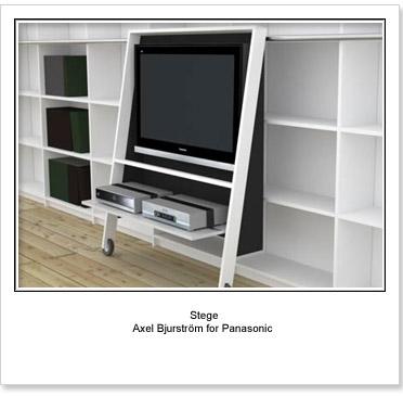 Бьюрстром создал для Panasonic несколько концептов с целью продемонстрировать, как плоско-панельные дисплеи марки можно разместить в интерьере. В результате получилось три варианта - концепт (на рис.) Stege (в переводе с шведского – «лестница»), Rida («занавес») для телевизоров с диагональю от 50 дюймов и выше и Staffli («мольберт»).