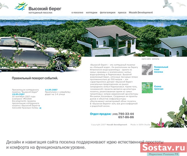 Агентство Plenum разработало бренд коттеджного поселка "Высокий Берег"Агентство Plenum разработало бренд коттеджного поселка премиум-класса "Высокий Берег", расположенного на берегу Истринского водохранилища.В задачи агентства входили разработка концепции позиционирования, системы визуальной идентификации, системы навигации и ориентирования, креативной стратегии поселка. Разработанная концепция позиционирования: "Высокий берег" - это поселок для красивой жизни вдали от городской суеты, это единение с природой не в ущерб привычному комфорту. "Поднимись над суетой!" Основную идею позиционирования развивает чистый и "просторный" стиль поселка. Логотип представляет собой композицию из свободно расположенных графических элементов, идентифицируемых как волны, листва и отражение листьев в воде. Намеренно "экологичный" стиль графики с использованием аморфных природных форм и отсылает к трендам оформления природных заповедников, экологических организаций. Лаконичное и современное шрифтовое начертание соответствует прогрессивному архитектурному решению поселка. В основу креативной стратегии легли сопоставление привычных атрибутов городской жизни с благотворным влиянием жизни в естественных условиях. Оригинальными слоганами поддержаны разработанные образы - автомобиль, ноутбук и дамская сумочка, увитые растениями. Конструктивное решение носителей информации соответствует архитектурному облику поселка, в оформлении навигационных объектов используются те же материалы, что и в проектах коттеджей. Графические элементы системы навигации (шрифты, пиктограммы, дополнительные элементы) соответствуют основным константам фирменного стиля. "Рынок загородной недвижимости предельно насыщен, причем большая часть предложений мало отличаются друг от друга как по функциональным характеристикам, так и имиджем, который формируется в коммуникациях, - говорит коммерческий директор компании Mozaik Development Татьяна Капланова. - В нашем случае этими преимуществами стали расположение поселка (у престижного Истринского водохранилища) и уникальный архитектурный стиль "Высокого берега". Мы не хотели остаться незамеченными и в тоже время не стремились к чисто "креативной" коммуникации с аудиторией, ведь "Высокий берег" - это действительно уникальное предложение, не требующее приукрашивания действительности". |