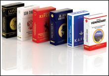 Новинка рассчитана на богему и эстетов: в сигаретной библиотеке нет бульварного чтива, только классика. В книги "табачной" серии вошли произведения Джозефа Конрада, Эрнеста Хемингуэя, Франса Кафки, Редьярда Киплинга, Роберта Льюиса Стивенсона и Льва Толстого.//