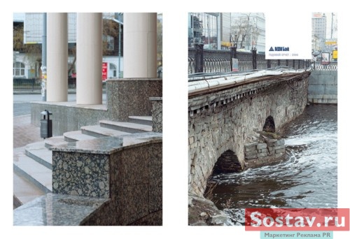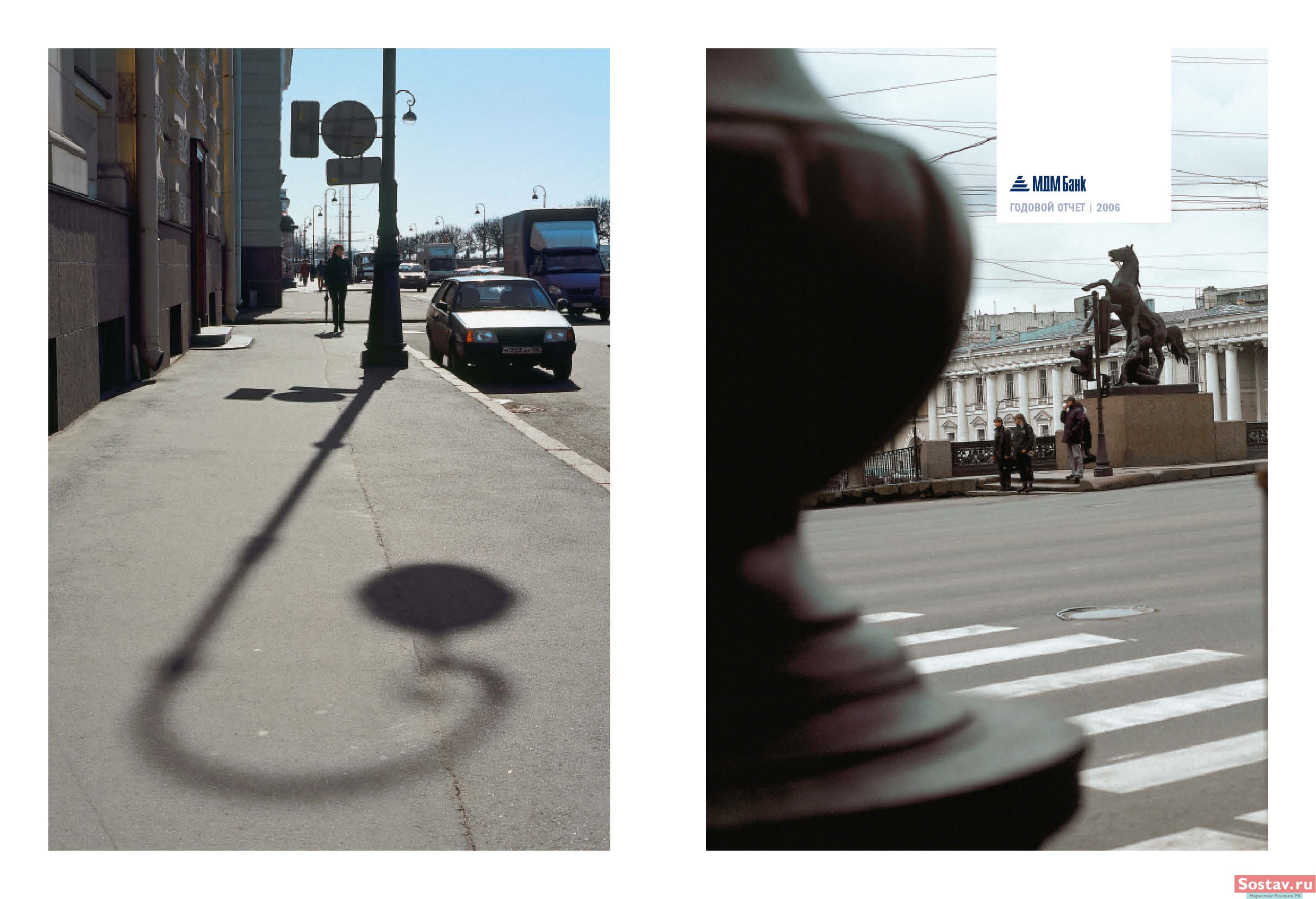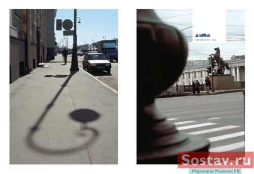 Банки в городе! Кампания для "МДМ-Банка"Дизайн-бюро Agey Tomesh разработало дизайн годового отчета для ОАО "МДМ-Банк".Проект получил условное название "Банк в городе". В его основе - желание показать гармоничное и доброжелательное соседство банка в городских ландшафтах, естественность пребывания в окружающем мире. Эти идеи визуализированы в виде разворотов - пар фотографий архитектурных пейзажей различных городов России, связанных единой композицией. Присутствие в них банка не является доминантным, но становится необходимой составляющей городской среды. |