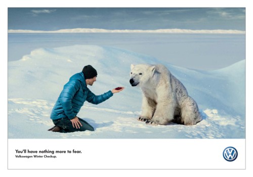 Если ты не боишься кормить белого медведя с руки, значит у тебя есть VolkswagenС наступлением холодов у автомобиля могут проявиться скрытые дефекты. Но если вы владелец Volkswagen, то "вам больше нечего бояться", ведь теперь, как сообщает с помощью этого принта агентство DDB Milan, к вашим услугам специальная зимняя проверка.Надпись: "Вам больше нечего бояться. Зимняя проверка Volkswagen." Агентство: DDB Milan, Италия Творческий директор: Vicky Gitto Арт директор: Michele Sartori Копирайтер: Riccardo Ciunci Фотограф: Davide Bodini Пост-производство: Roberto Marchesi |