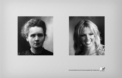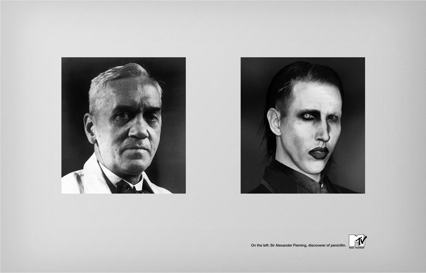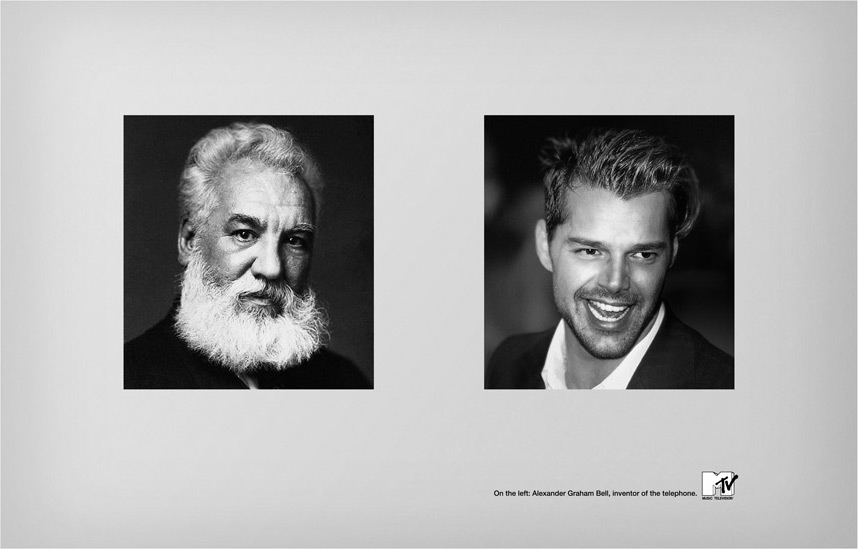 Ликбез от MTV и агентства Y&RНа каждом из этих принтов, созданных аргентинским агентством Y&R для музыкального телеканала MTV, изображено два человека. Один из которых всемирно известен благодаря MTV, а другого современная молодежь может и не узнать, поэтому нам и представляют этих знаменитых ученых: Сэр Александр Флеминг, Александер Грэм Белл и Мария Кюри.Надпись: Слева: Сэр Александр Флеминг, изобретатель пенициллина. Слева: Александер Грэм Белл, изобретатель телефона. Слева: Мария Кюри, первая женщина-лауреат Нобелевской премии. Агентство: Y&R, Буэнос-Айрес, Аргентина |